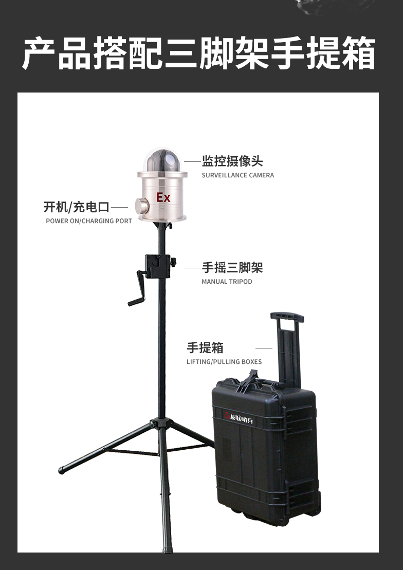 友聯(lián)哨兵5G防爆布控球是一款具備防爆功能的5G布控球產(chǎn)品,專為特定行業(yè)(如石油、煉化、化工、燃?xì)獾任kU(xiǎn)化學(xué)和易燃易爆行業(yè))設(shè)計(jì)。產(chǎn)品內(nèi)置高清攝像機(jī)及高性能鋰電池組,通過(guò)5G等無(wú)線網(wǎng)絡(luò)方式回傳至控制終端,具備防水防震防爆等特性,攜帶便捷,可快速安裝和收納,完全滿足石油、化工等作業(yè)區(qū)的移動(dòng)巡檢、無(wú)人值守、臨時(shí)監(jiān)控、應(yīng)急指揮的應(yīng)用需求。